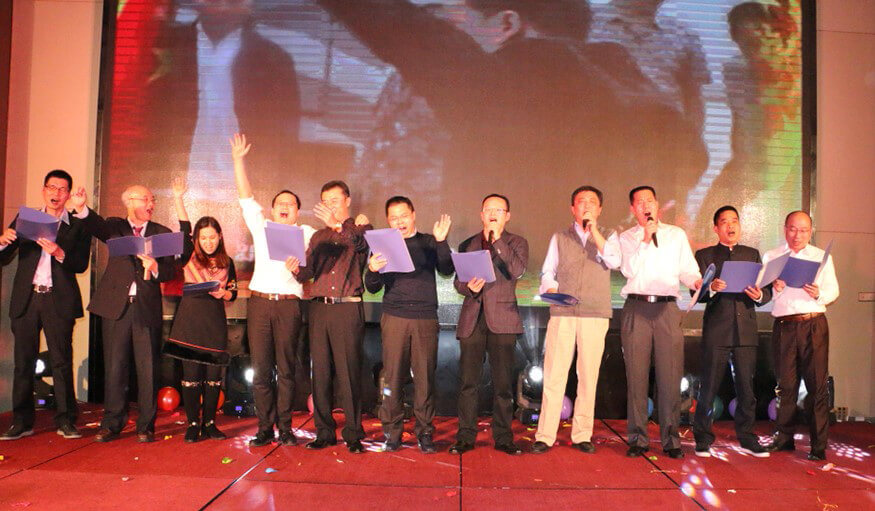 在度过三个小时的欢乐时光后,年会进入了尾声。全场人员齐齐进入演唱状态,伴随着优美的旋律,接连合唱了《相亲相爱一家人》、《同一首歌》、《朋友》三首歌曲。歌声飞扬,群情高涨,将现场气氛推向最高潮。大家放开歌喉,大声唱出心底的心声,尽情表达出对今年会、对他人的祝福和感恩。所有人的歌声交织在一起,彼此的心灵也在密切地交流。在响亮动听的大合唱中,今年会智能2016年度总结表彰大会暨2017迎新年会圆满落下了帷幕。