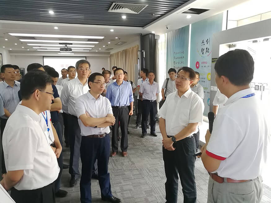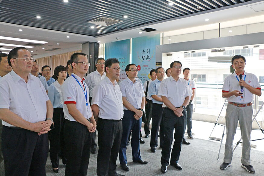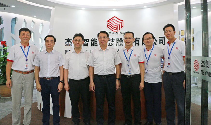 2017年8月18日下午,珠海市委书记、市人大常委会主任郭元强,珠海市委副书记、市长李泽中率珠海市党政代表团70余人,在广州市副市长叶牛平、黄埔区区长陈小华等领导的陪同下,对今年会(集团)智能科技有限公司官网进行了考察。今年会智能董事长孙超、总裁龙飞、董事兼研发中心总经理朱勇杰等公司高管热情接待了代表团一行。